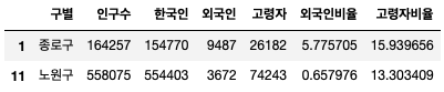 pop_Seoul[pop_Seoul["구별"].isin(["종로구","노원구"])]