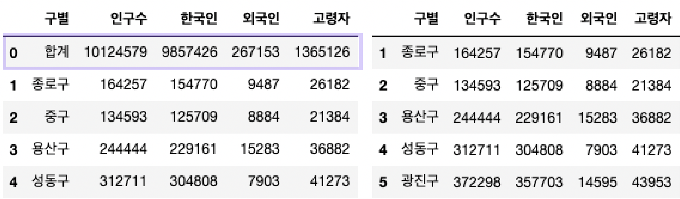 pop_Seoul.drop([0], axis=0, inplace=True)