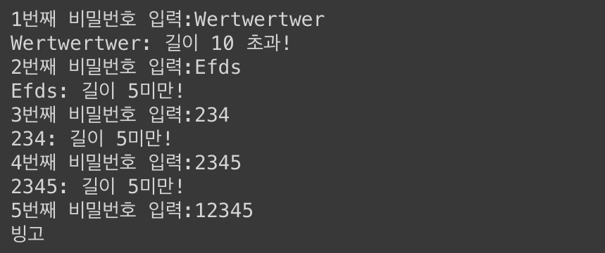 pw = input(f'{n}번째 비밀번호 입력:')