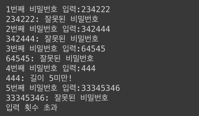 5회 이상 입력 시, 프로그램 종료