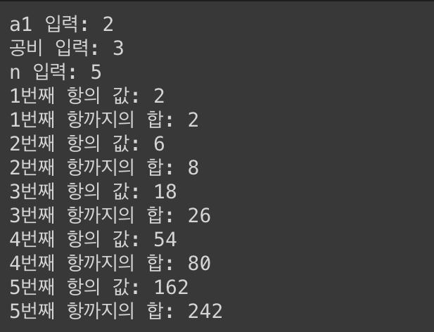 🖥 실행 (등비수열)