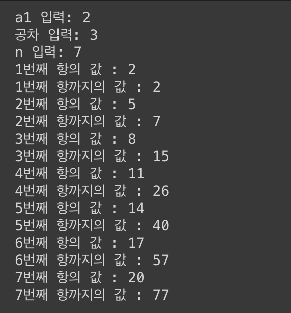 🖥 실행 (등차수열)