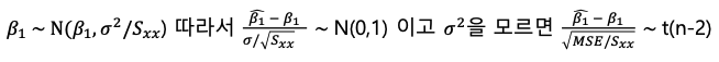- 평균제곱오차(mean square error) : SSE/(n-2) = $\widehat {\sigma^2} $